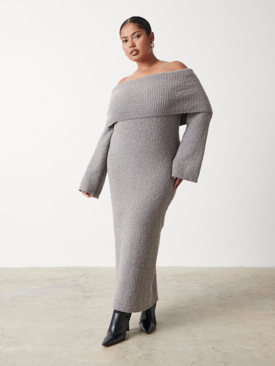 Pretty Lavish | WOMENS Elodie Midaxi Bardot Knit Dress Curve Grey