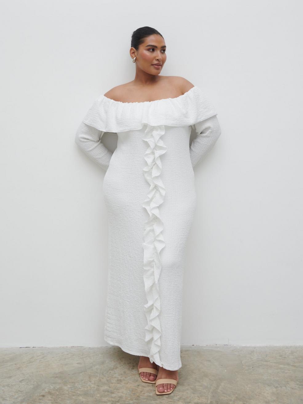 Pretty Lavish | WOMENS Hope Bardot Ruffle Jersey Maxi Dress Curve Cream